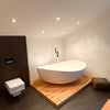Oświetlenie pośrednie jest preferowane, aby stworzyć łagodną i kojącą atmosferę. Coraz więcej osób myśli również o zainstalowaniu oświetlenia punktowego, aby podkreślić niektóre elementy łazienki.