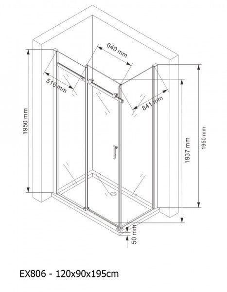 Kabina prysznicowa EX806 z drzwiami przesuwnymi - Bezpieczne szkło ESG 8 mm z powłoką Nano - 120 x 90 x 195 cm