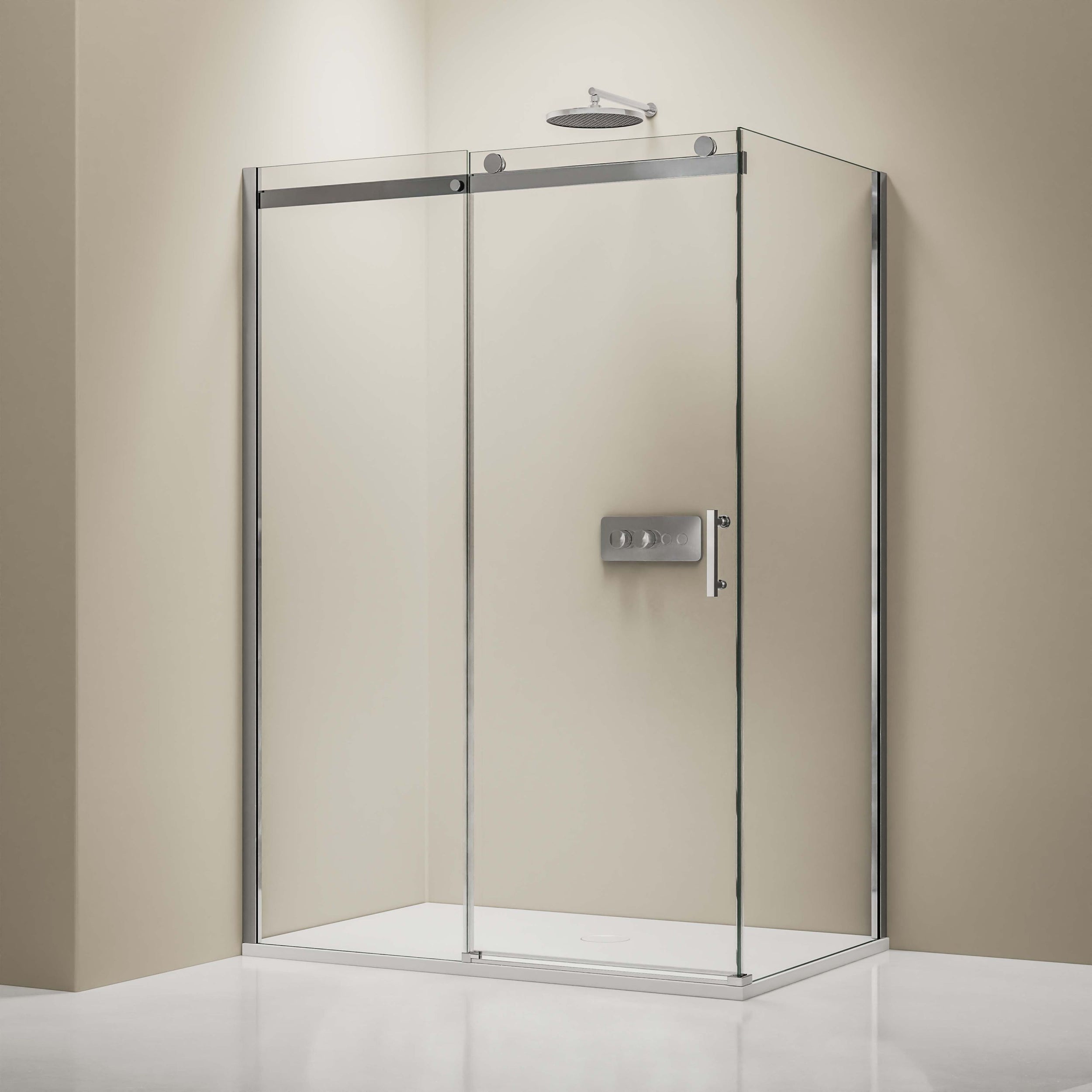 Ekskluzywny design, niezwykle praktyczny i oszczędzający miejsce dzięki systemowi przesuwnemu. Ta kabina prysznicowa jest również idealna do małych łazienek! Szkło o wysokości 195 cm zapewnia wygodną kąpiel pod prysznicem - nawet dla wysokich osób.