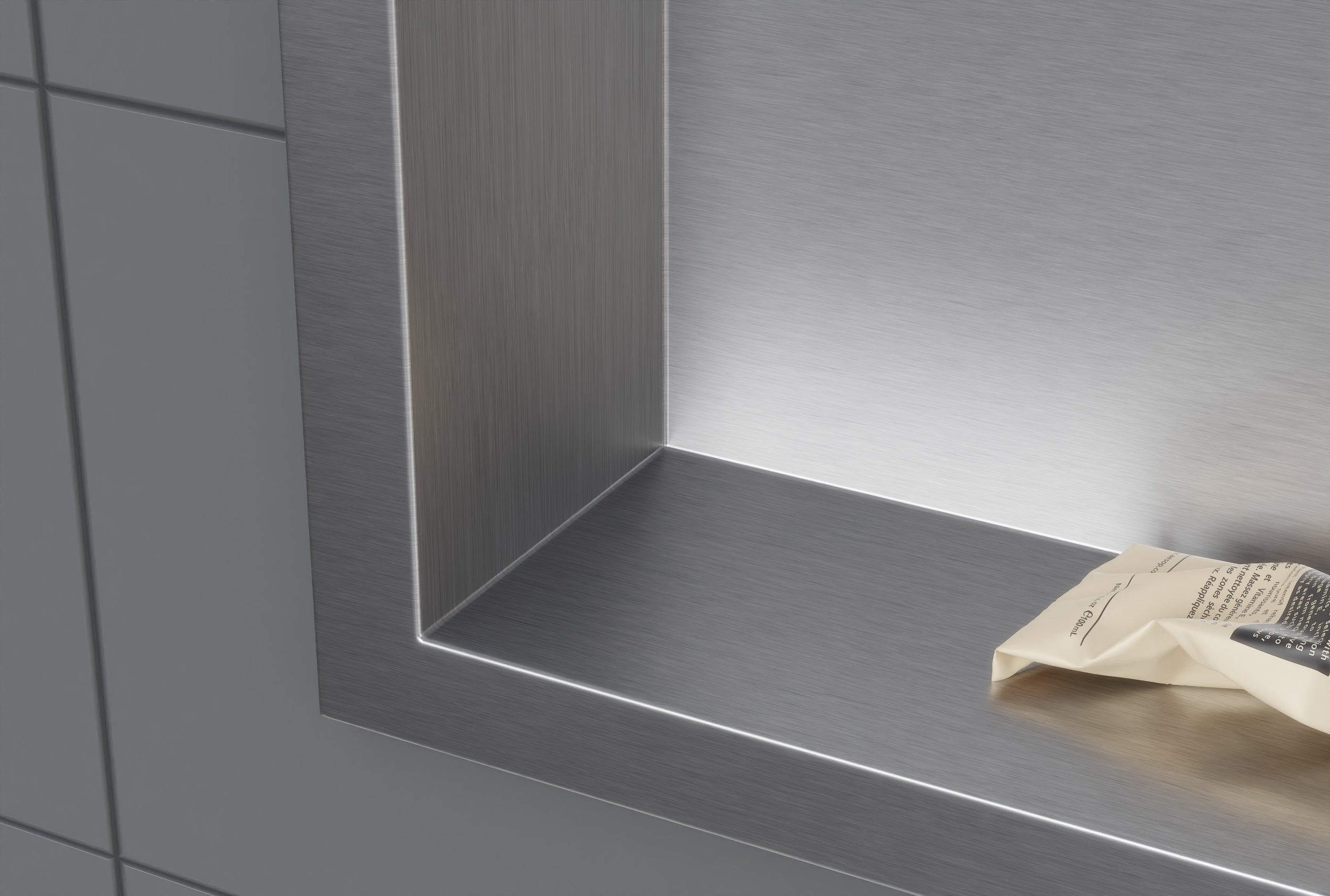 Dodaj elegancki i oszczędzający miejsce akcent do swojego pomieszczenia dzięki naszym wysokiej jakości półkom ściennym ze stali nierdzewnej. Nisze te są sprytną alternatywą dla konwencjonalnych półek, ponieważ są idealnie zintegrowane ze ścianą, nie zajmując cennej przestrzeni. Idealne do przechowywania przyborów łazienkowych lub przedmiotów dekoracyjnych, natychmiast nadadzą Twojej łazience stylowy i uporządkowany wygląd.