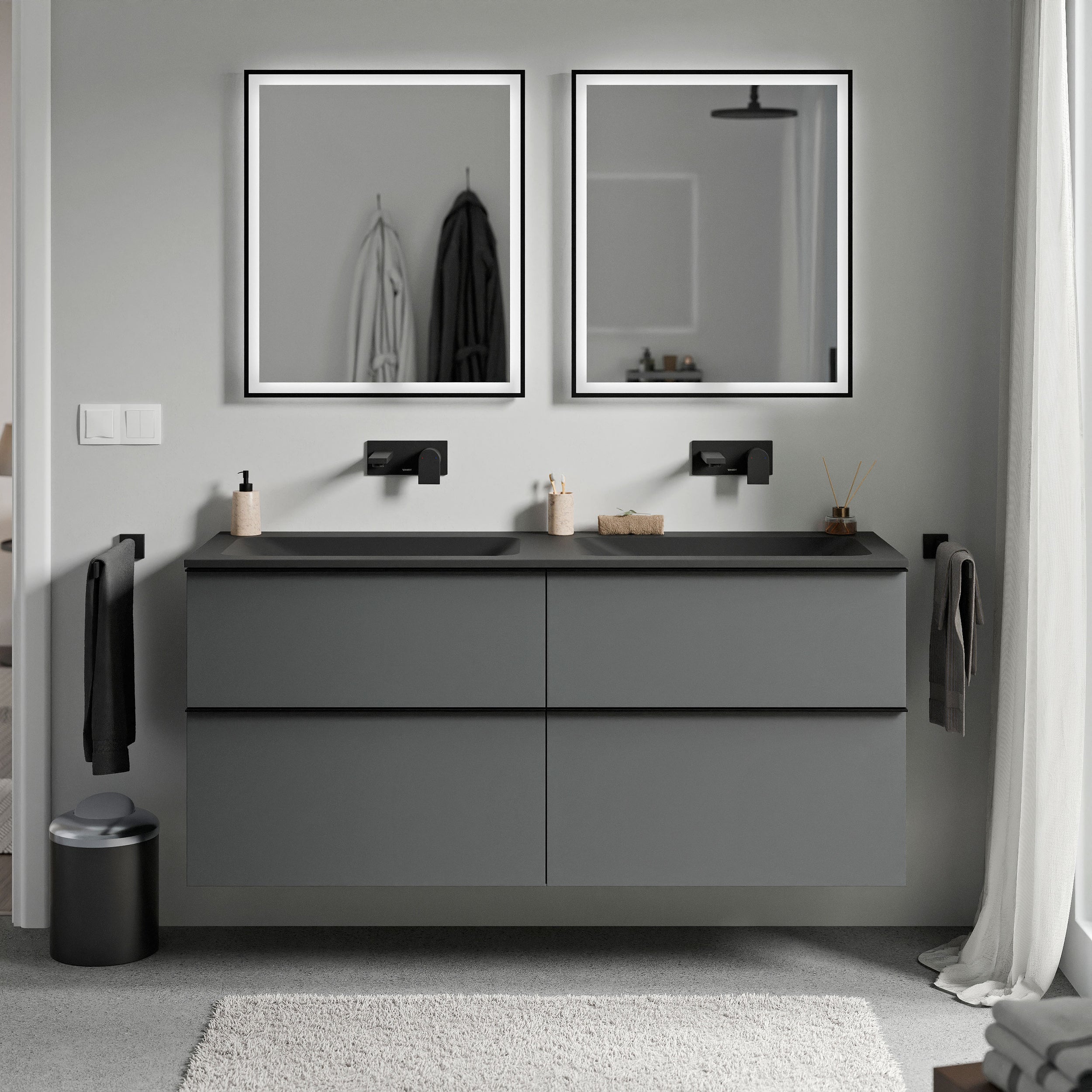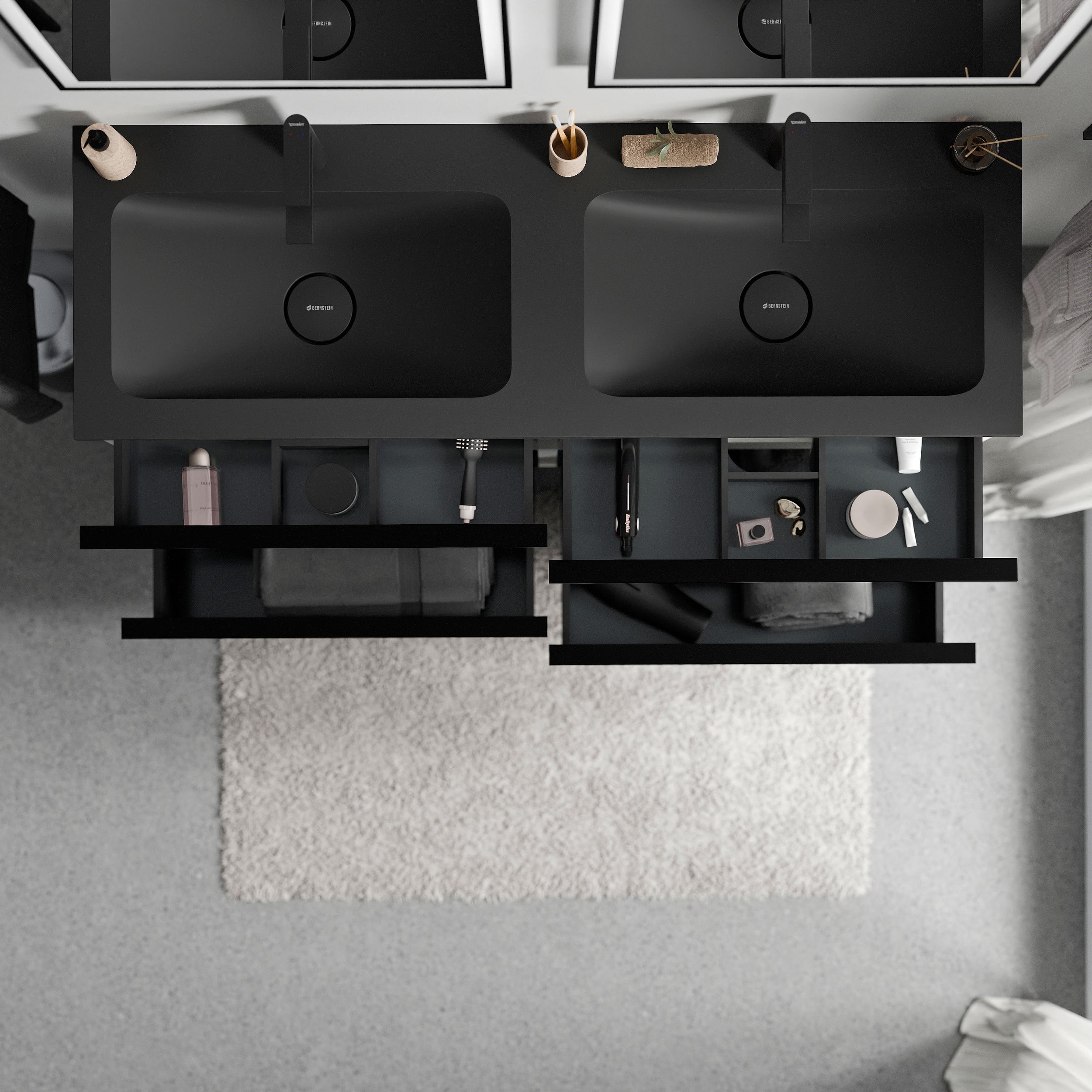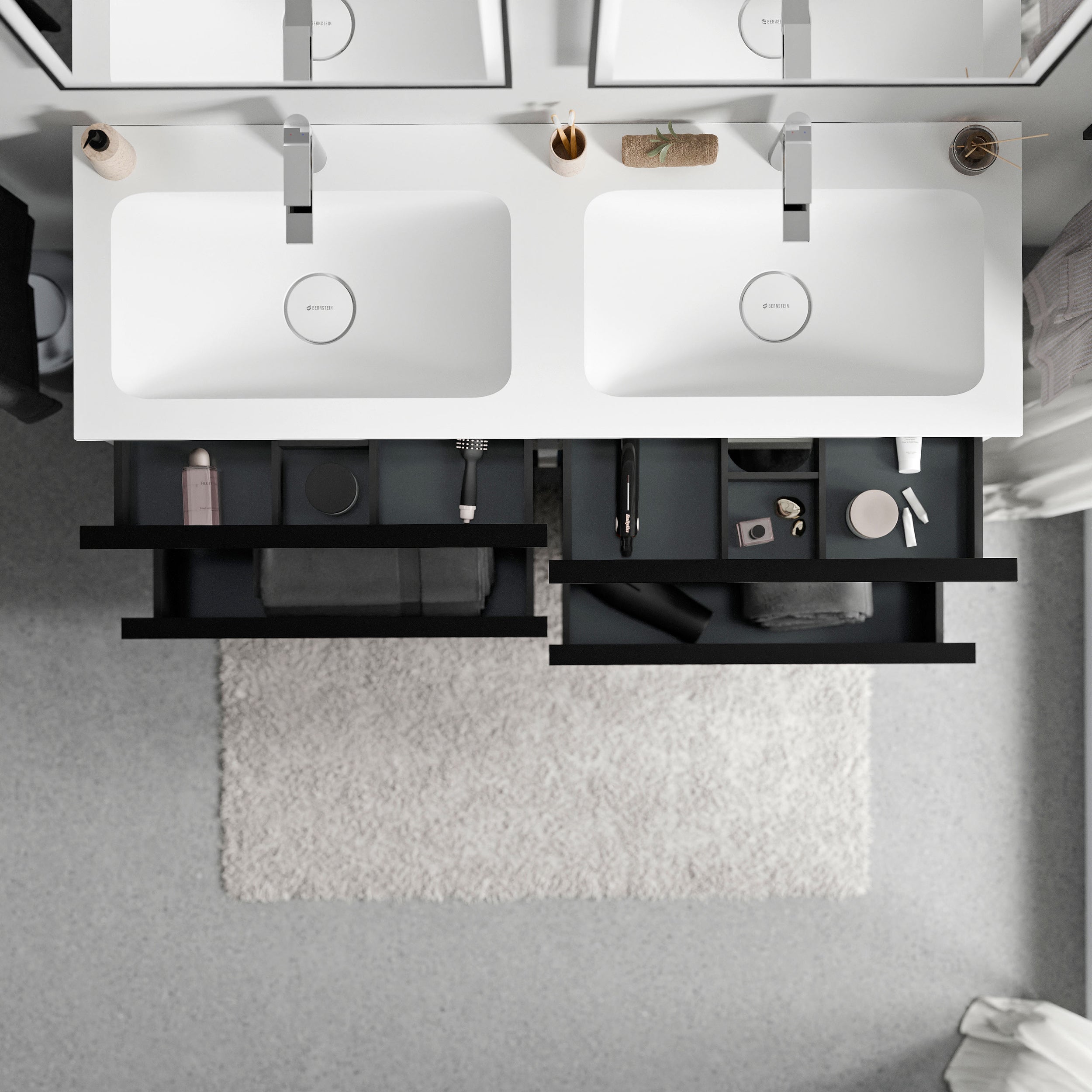 Ta szafka podumywalkowa o szerokości 120 cm i eleganckim antracytowym wnętrzu jest wyposażona w funkcję cichego domykania Soft-Close dla wygody osób śpiących do późna i tych, które wcześnie wstają z łóżka.. Dzięki zastosowaniu materiałów odpornych na wilgoć gwarantujemy, że będziesz cieszyć się tym meblem łazienkowym przez długi czas.