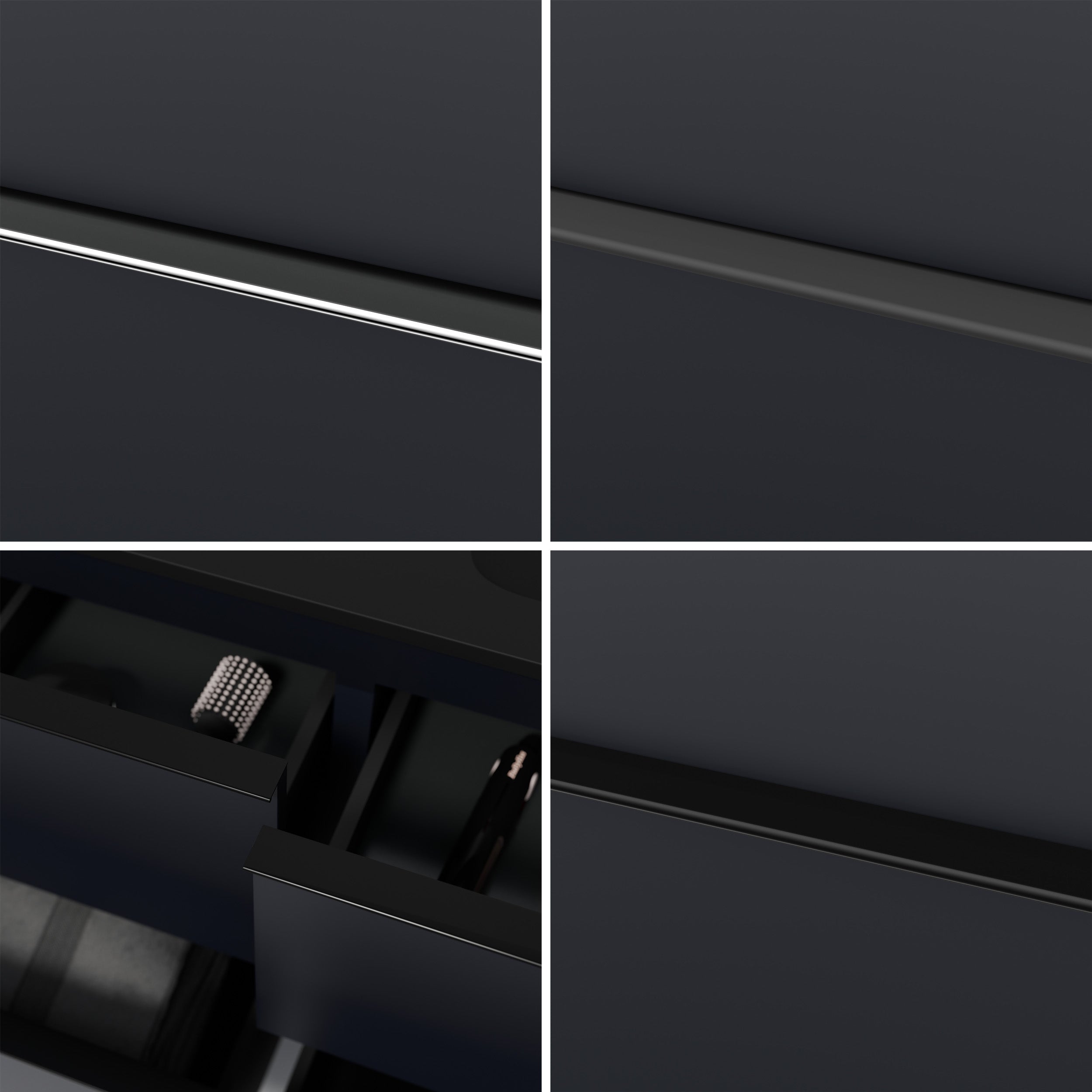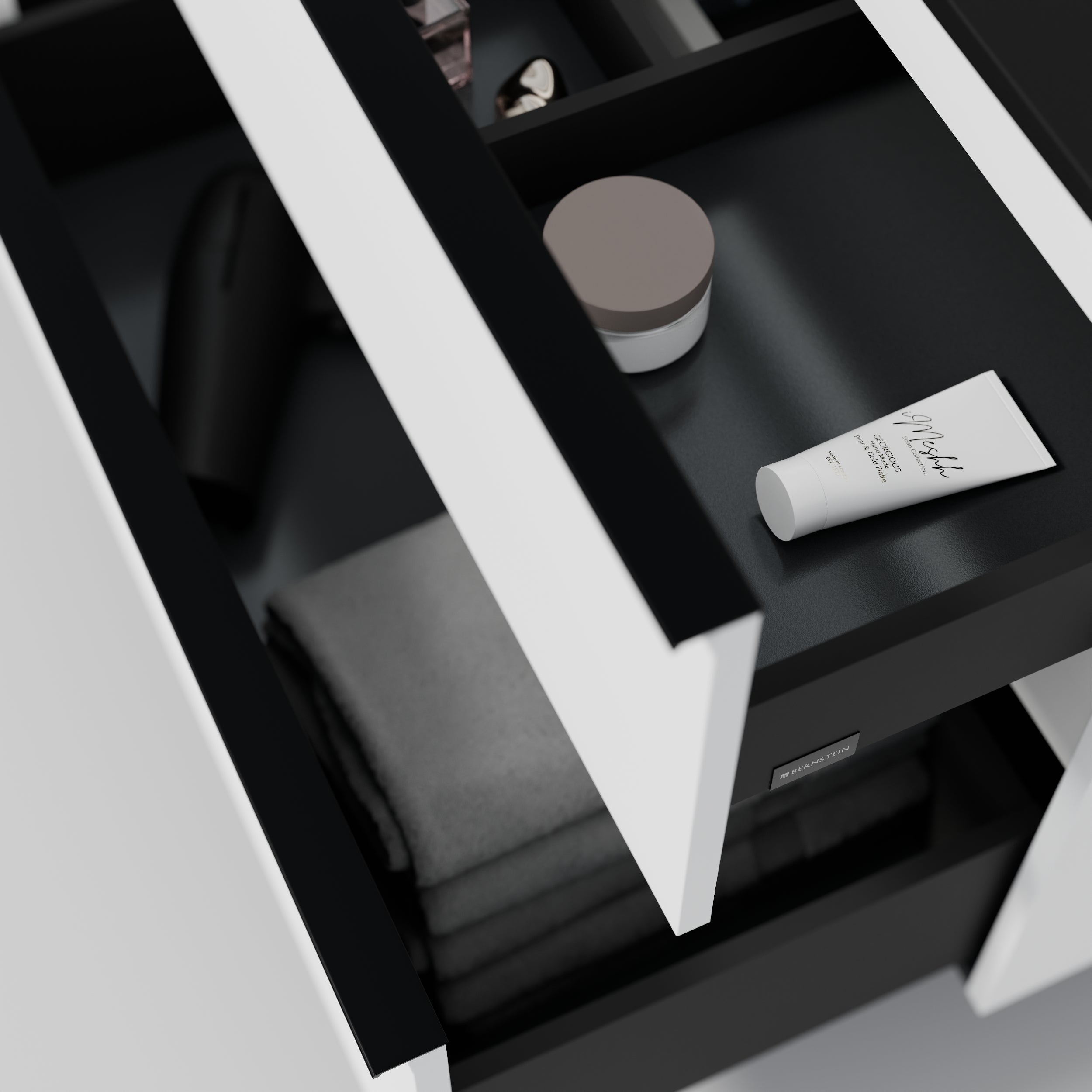 Meble łazienkowe wyposażone są w wysokiej jakości system szuflad firmy Hettich, który gwarantuje trwałość i łatwą obsługę. Szuflady można precyzyjnie regulować zarówno w poziomie, jak i w pionie, dzięki czemu można je idealnie ustawić. Szuflady są wyposażone w technologię ciechego domyku Soft-Close, która zapewnia płynne i delikatne zamykanie. Szuflady oferują maksymalne wykorzystanie przestrzeni dzięki smukłym ściankom, a opcjonalny wkład do szuflady zapewnia dodatkowy porządek.