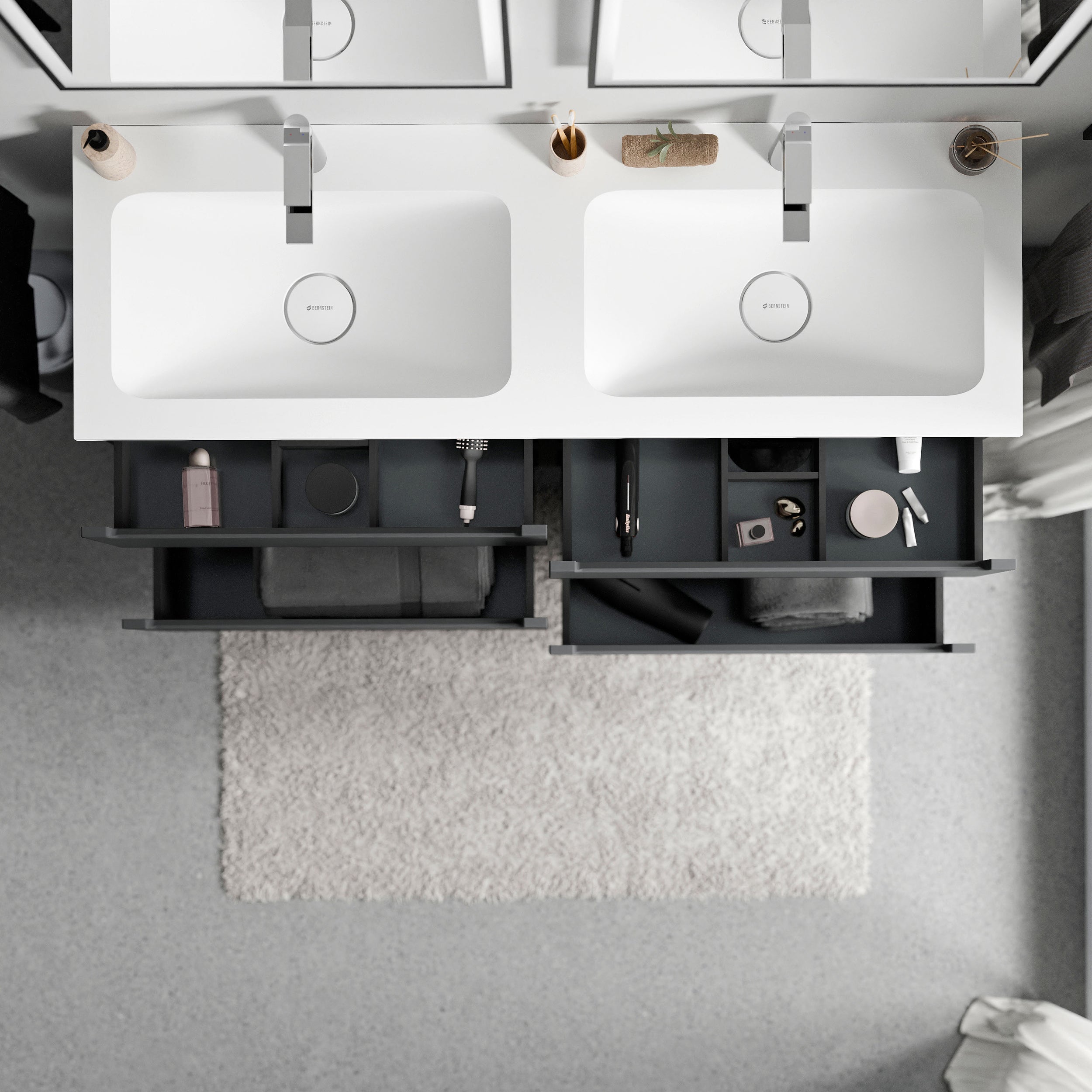 Szafka podumywalkowa VIREO 120 cm z umywalką z odlewu mineralnego CREAM - Kolor do wyboru