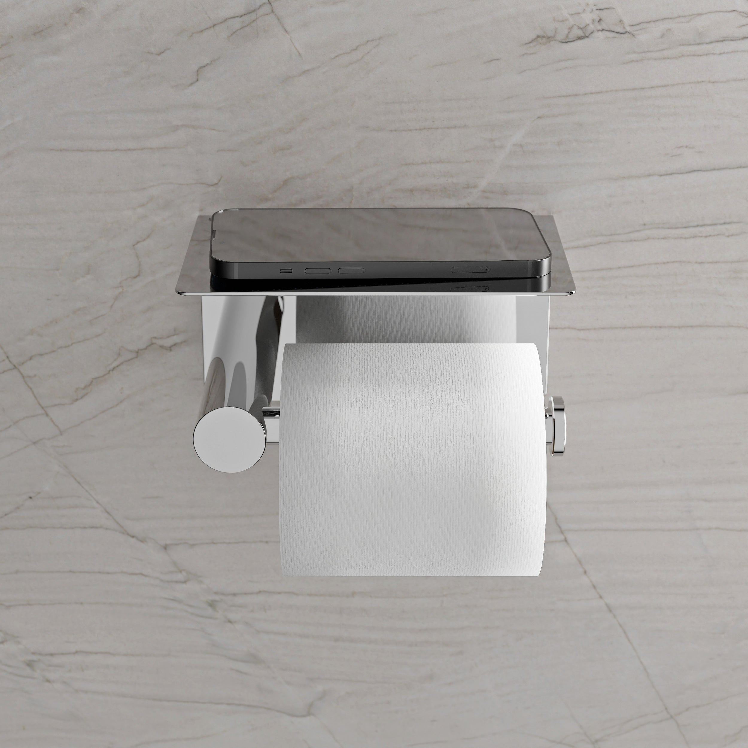 Dodaj elegancki i funkcjonalny akcent do swojej łazienki dzięki uchwytowi na papier toaletowy OLA z półką!